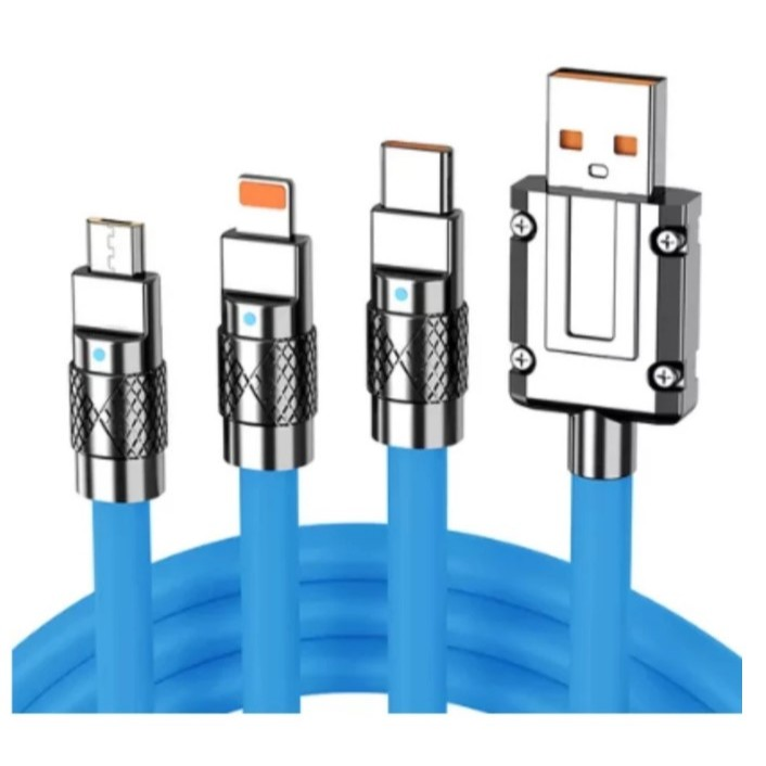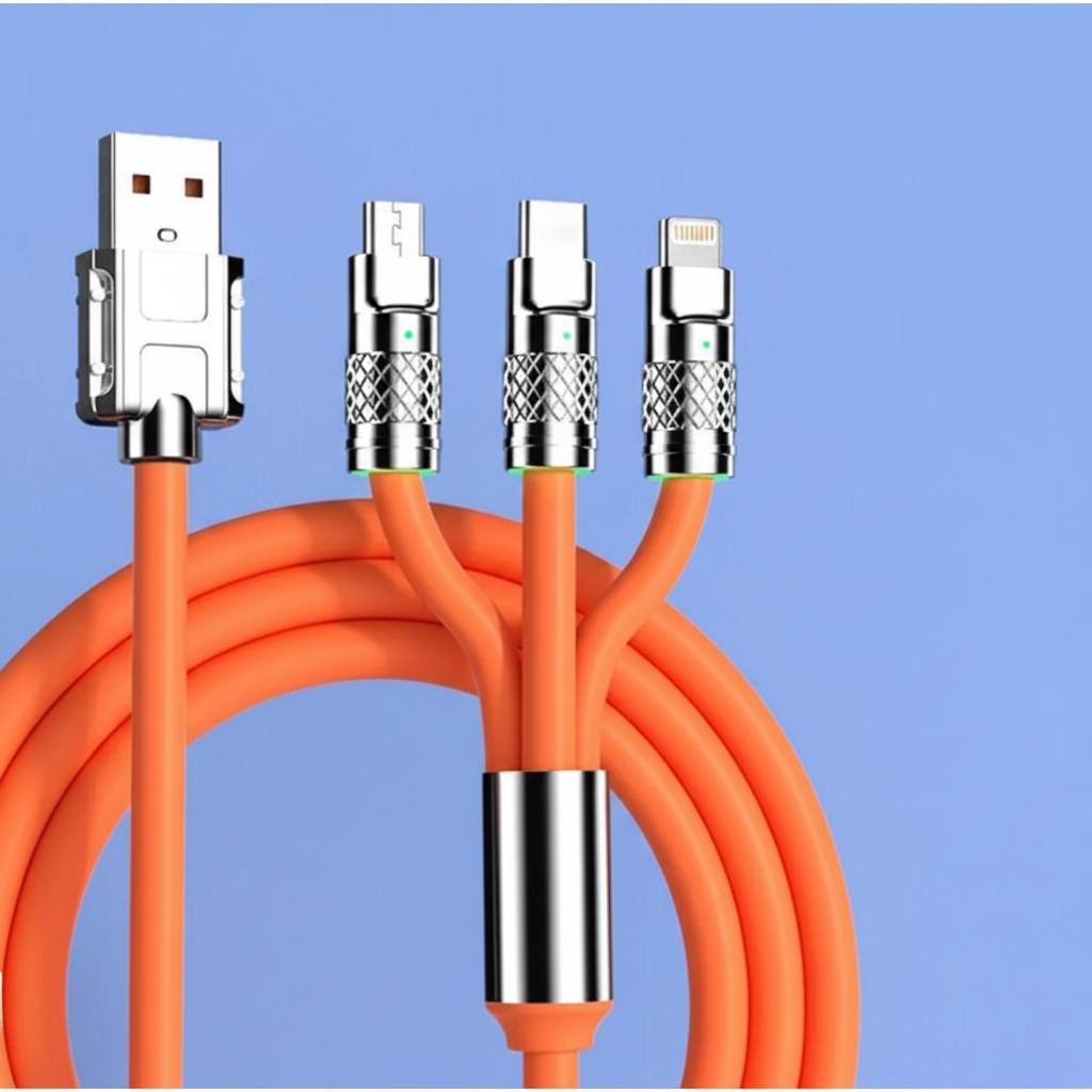 O Cabo de Carregamento Rápido de Metal 3 em 1 chegou à BlasterShop para simplificar sua rotina com tecnologia, força e praticidade.