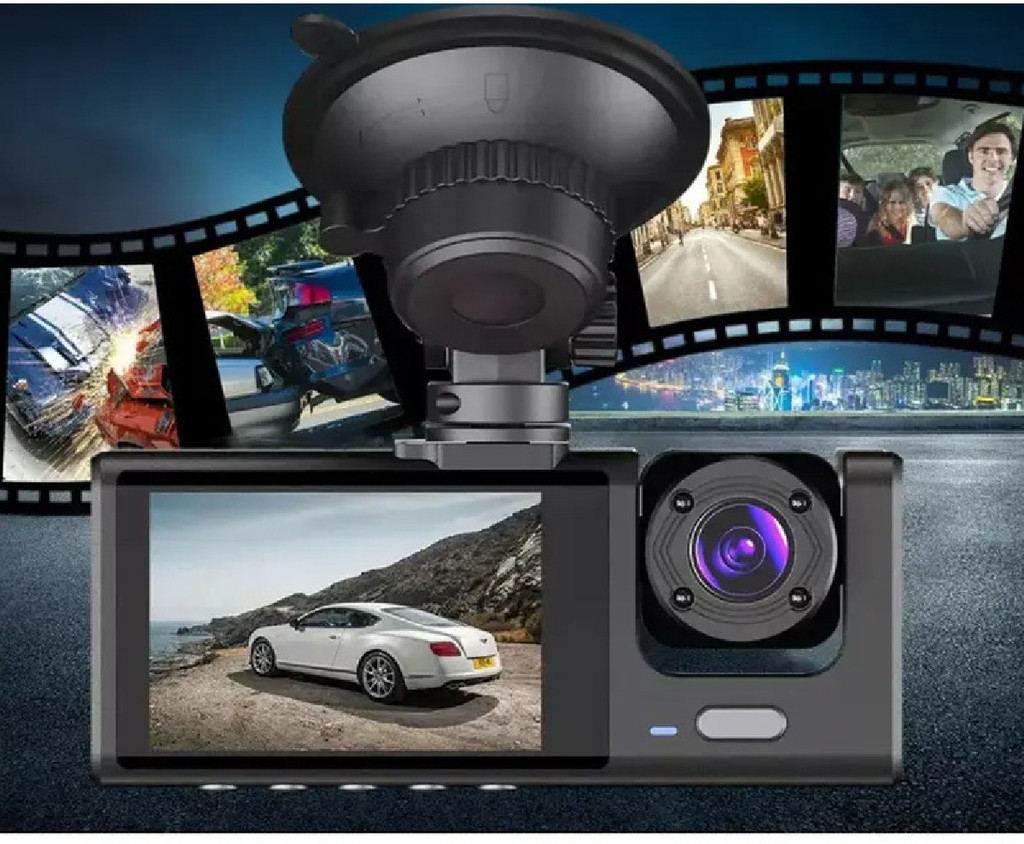 - Visão Tripla Abrangente: Conte com três câmeras (frontal 1080P, interna 480P, traseira 480P) que gravam simultaneamente, oferecendo uma cobertura completa do ambiente externo e interno do veículo. A tela IPS de 2 polegadas mostra as imagens em tempo real para sua segurança.
