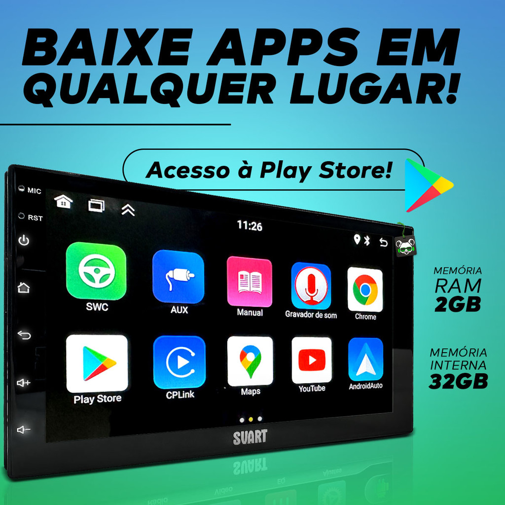 - Baixe Seus Aplicativos: Acesse a Play Store e baixe seus aplicativos favoritos diretamente na central.