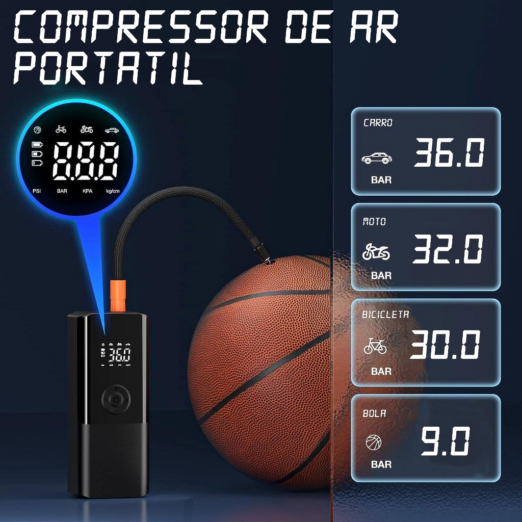 Tenha ar e energia sempre à mão com o dispositivo compacto que te tira de qualquer aperto!